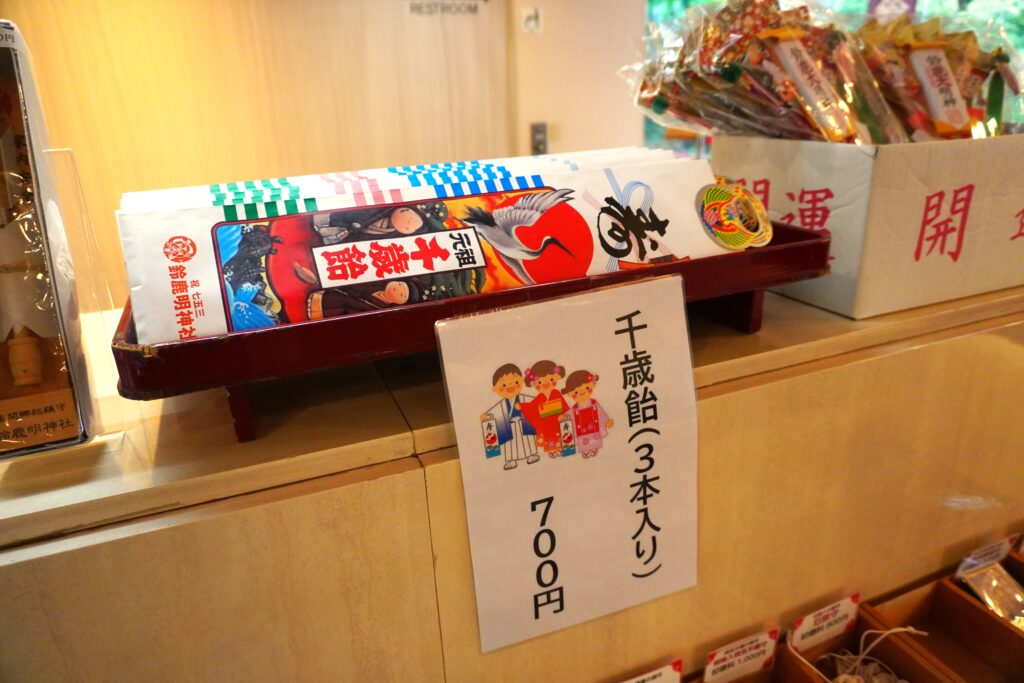 今は袋のデザインも様々ですが、当神社の千歳飴は伝統的な柄の3本入り。ご入用の際は受付にてお申し付け下さい。