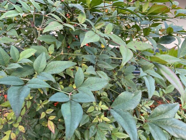 境内の木々は徐々に紅葉の兆しをみせていますが、その中にあって南天は早くも実を結び、赤く染まり始めていました。