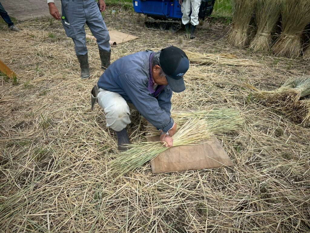 脱穀後は人力で藁を選っていきますが、これが結構な重労働となります。