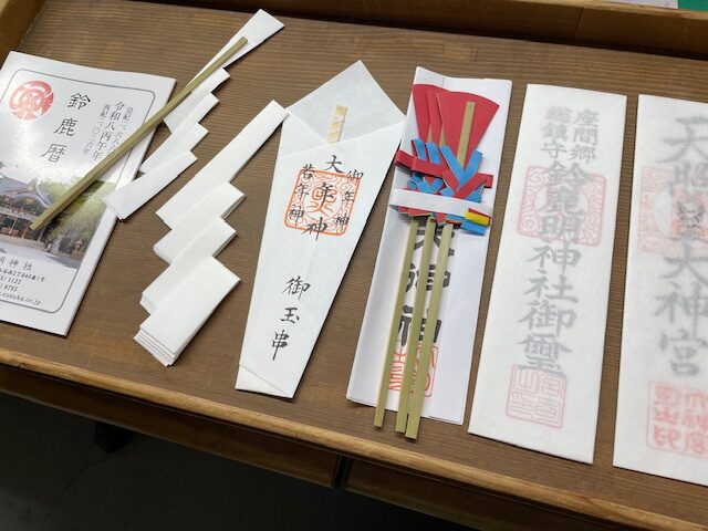 内容は「神宮大麻」「鈴鹿大麻」「荒神様」「年神様」「晦日祓」「神棚用の紙垂」「令和8年鈴鹿暦」です。別々にお頒けすることもできますが、一式の方が間違いがないかと思います。