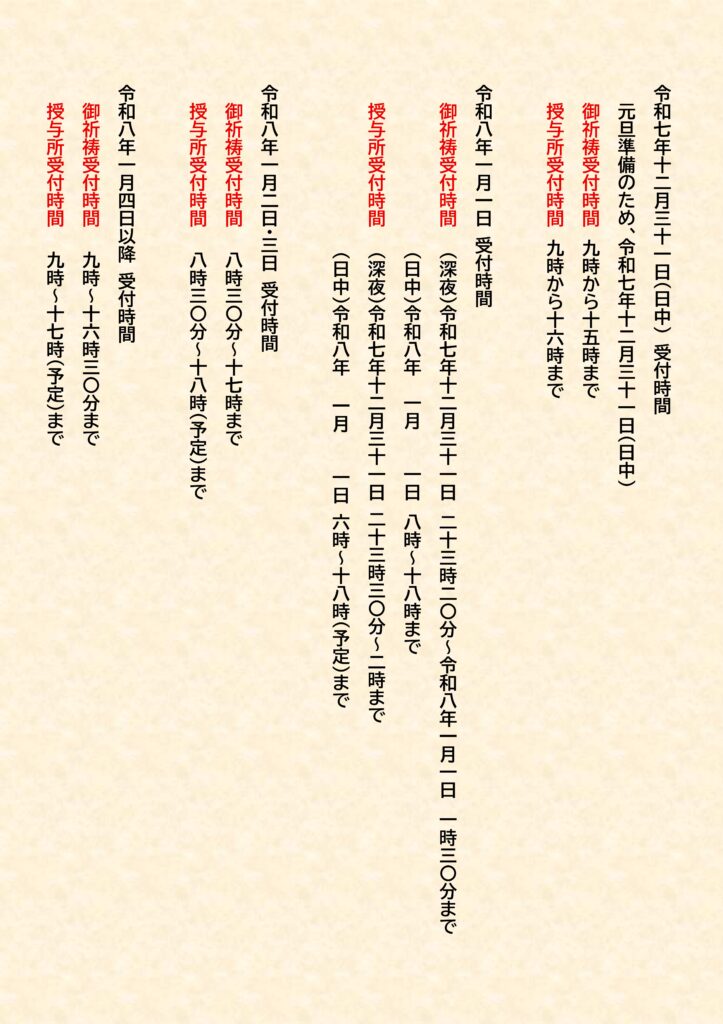 令和7年12月31日・令和8年御祈祷並びに授与所受付時間のお知らせ