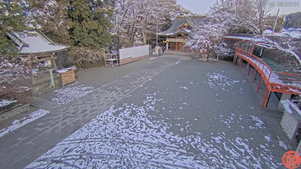 昨日の雪は午後のうちに殆ど溶けていたので、神社近辺の道路では交通に支障はありませんでした。