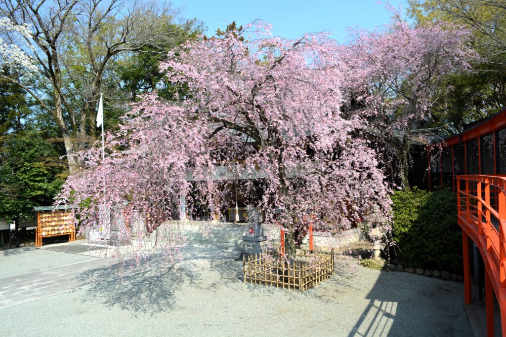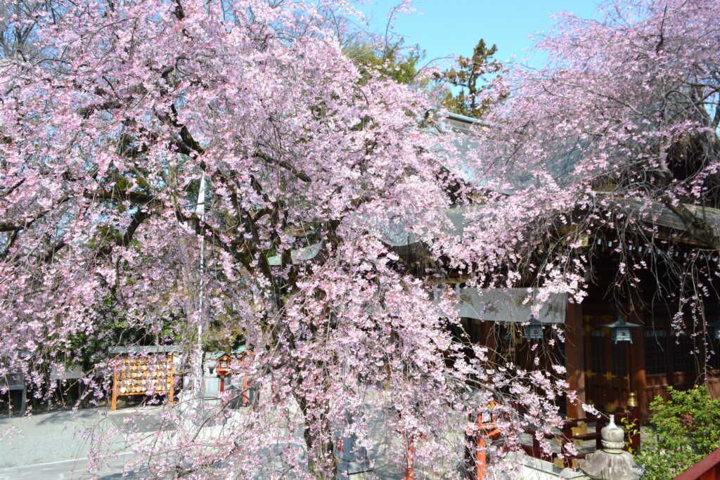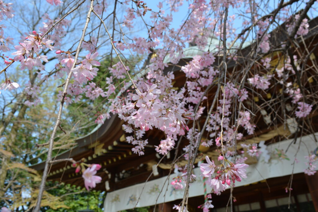 当社の本殿脇にございます枝垂桜もほぼほぼ満開になってきました。早朝より多くの皆様がご来社され桜を楽しんでいただいております。是非、春の訪れを感じて頂ければと思います。