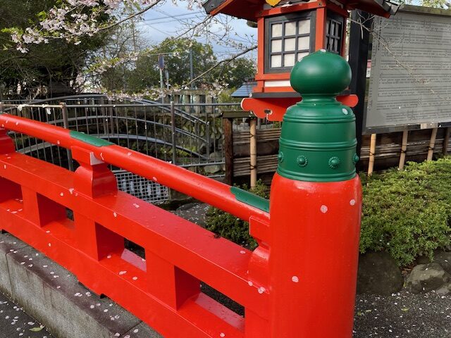 年月と共に色も落ち着いた風合いへ変わっていきますので、これほどまでに明るい朱色は今だけのものです。境内にお越しの際は花だけでなく太鼓橋の色も楽しんでいただければ幸いです。